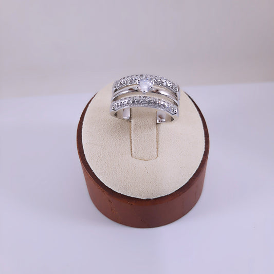 Anel Duplo Detalhe Cravejado e Solitário