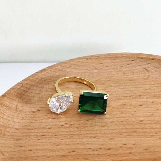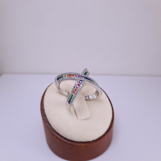 Anel Regulável Zircônias Coloridas geometricas nas Pontas