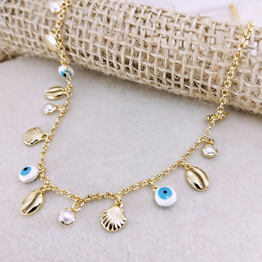 Colar Choker Búzios e Olho Grego Pendurados