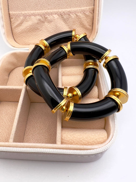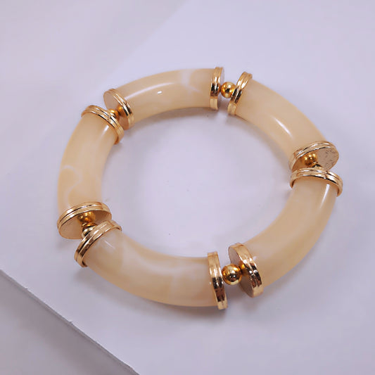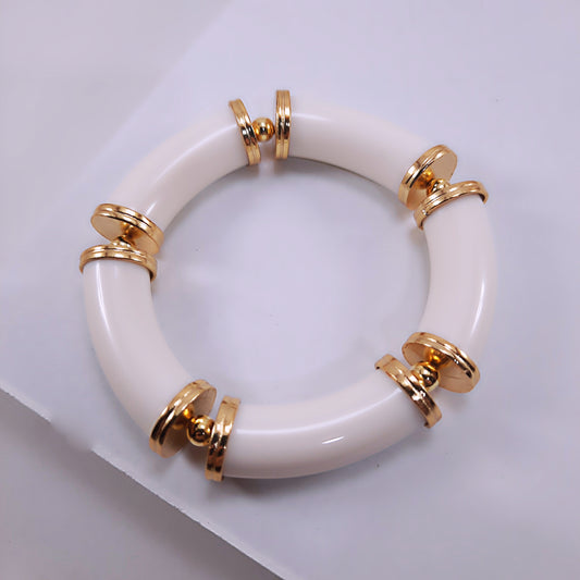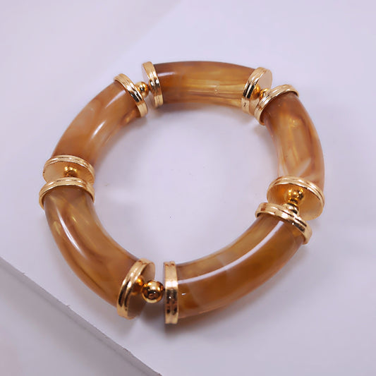 Pulseira Acrílico Tubos Detalhes Dourados