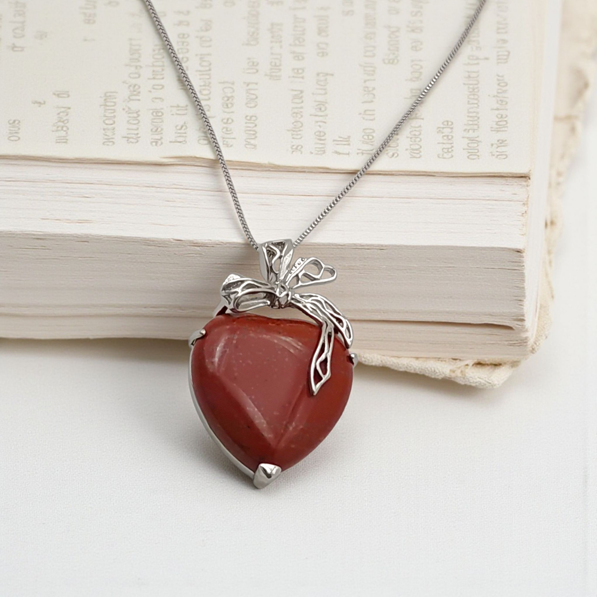 Colar Longo Coração Pedra Jaspe