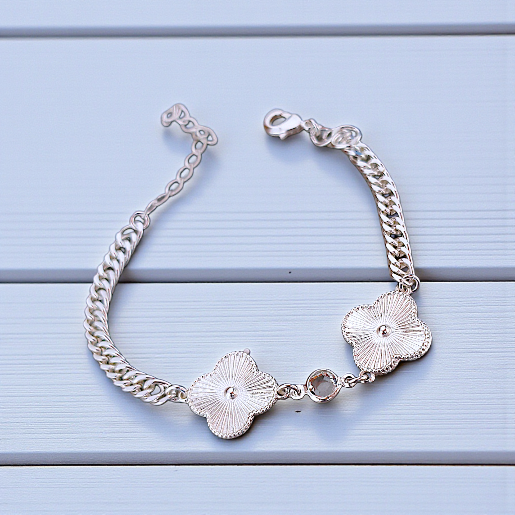 Pulseira Grumet Trevos e Zircônia VClif Prata 925