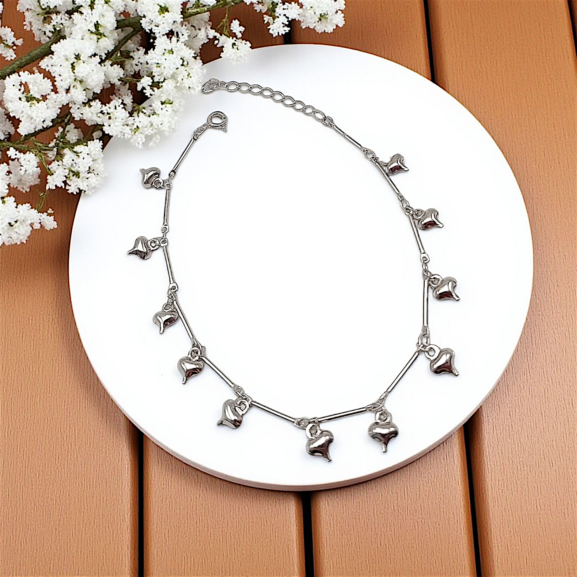 Tornozeleira Pingentes Corações